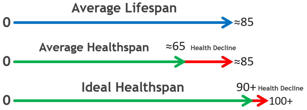 Healthspan refers to the years you live in good health, free from chronic disease and disability, while lifespan simply measures total years lived. The goal is maximizing healthspan so that your healthy years closely match your total lifespan, minimizing the period of decline and dependency. Modern medicine has extended lifespan significantly, but healthspan has not kept pace, creating a gap filled with chronic illness and reduced quality of life.