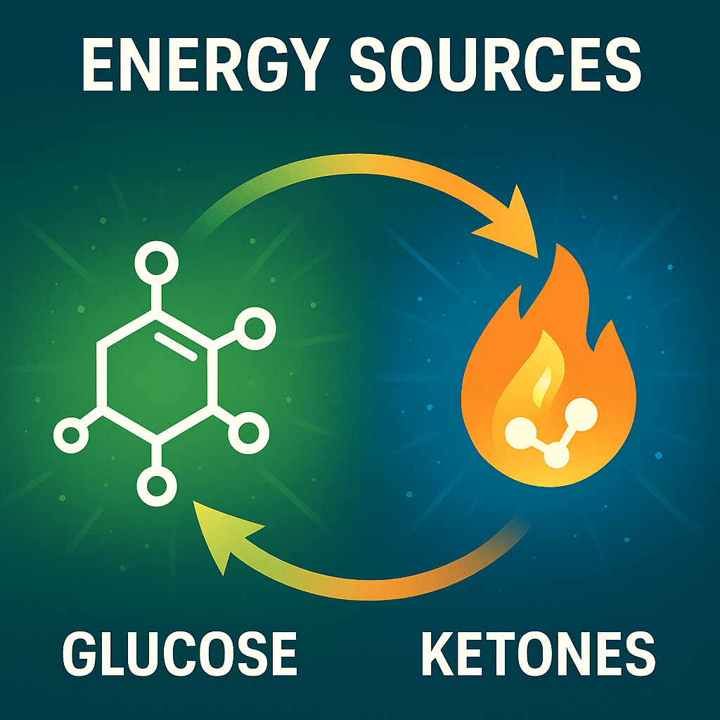 Glucose and ketones are both essential energy sources. Glucose powers quick, high-intensity activity and daily brain function, while ketones provide a steady backup during fasting or low-carb diets. Training your body to use both fuels may help protect your brain, improve endurance, and support overall health.